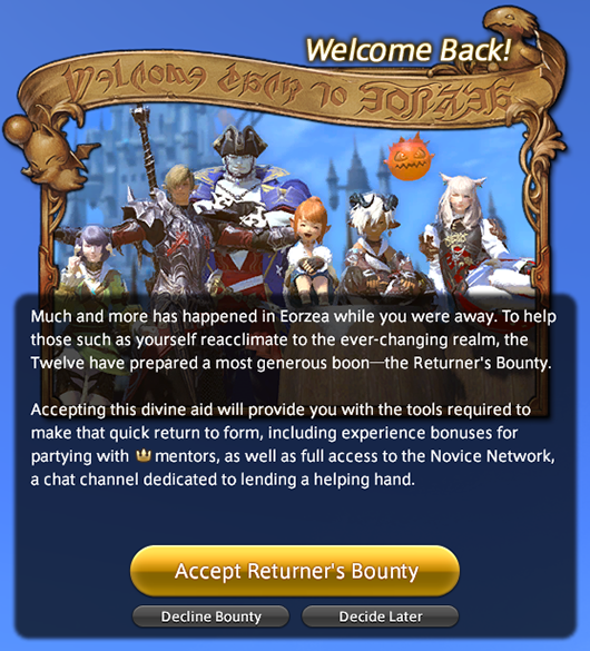 Final Fantasy 14: Veteran players returning to the game after long pauses are encouraged to join a social support network.